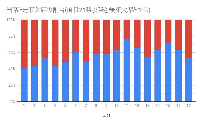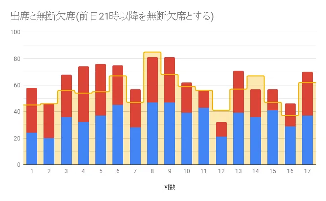 そのため、前日の21時以降のキャンセルを欠席として扱った場合のデータです。