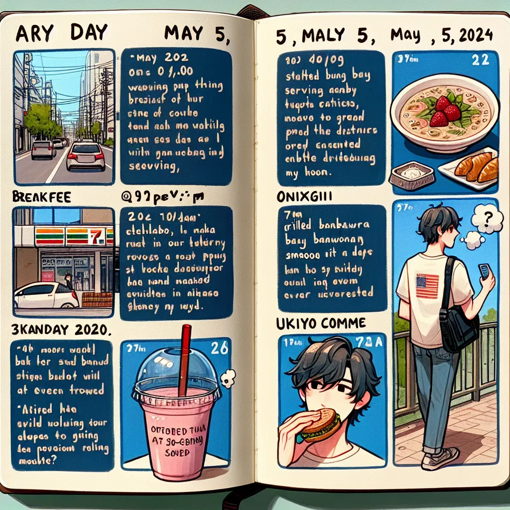 今日の朝は目覚ましの音ではなく、通り過ぎる車の音で目を覚ました。窓を開けて新鮮な空気を吸い込むと、春の訪れを感じさせる心地良い風が部屋を満たした。朝食はコーヒー1 と簡単なサンドイッチ。いつもはセブンイレブンでおにぎりを買うのだが、なんと今日は売り切れ。代わりに選んだサンドイッチは意外ともちもちとしておいしかった。2それにしても、朝からおにぎりが売り切れているとは、珍しいこともあるものだ。