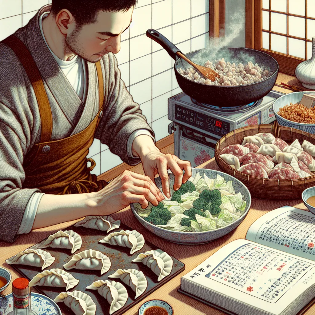 お昼前になると、仕事を一段落させてキッチンへ。冷蔵庫から具材を取り出し、早速餃子作りを始める。キャベツは細かく刻んで、豚ひき肉と混ぜ、にんにくと生姜をたっぷりと投入。この瞬間、包丁を握る手が少しずつリズムを刻むのが心地よい。そこに、ごま油と醤油、塩胡椒を加え、しっかりと混ぜ合わせる。餃子の皮に具を乗せると、しっとりとした手触りが感じられた。包む作業は少し時間がかかるけれど、その一つ一つの動作が心を落ち着けてくれる。