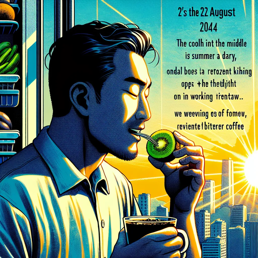 午前中の仕事が一段落した頃、あの冷凍キウイがどうしても食べたくなりました。キッチンに向かい、冷凍庫から取り出し、一口かじると、その爽やかな酸味と冷たい感触が口いっぱいに広がります。この瞬間、夏の暑さも忘れてしまうほどの爽やかさが広がり、心地よい気持ちに。